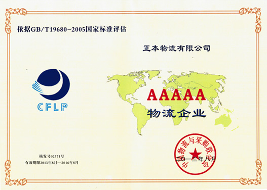 9月13日,由中国物流与采购联合会主办,在潍坊召开的“宣贯物流企业分类与评估指标暨A级物流企业授牌大会”上,正本物流荣膺中国 AAAAA级物流企业,这也是淄博市第一家获此殊荣的企业。