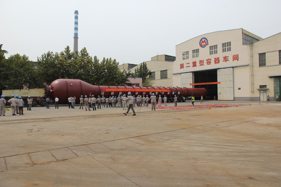 9月4日清源集团齐鲁石化机械制造公司制造的两台大型设备脱硫反应器依次出厂。