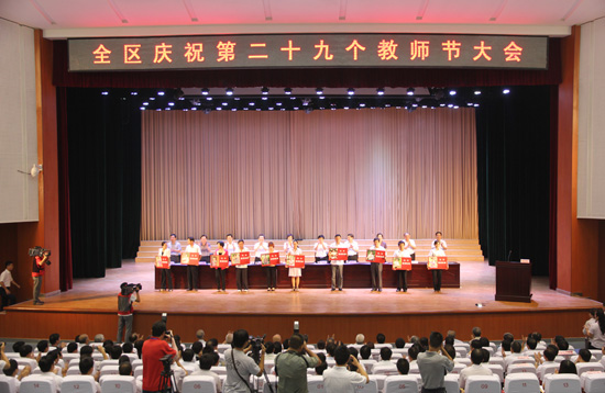毕荣青强调,要坚持教育内涵发展不松懈。全区教育系统要始终把促进学生全面发展、健康成长作为出发点和落脚点,贯穿于教育全过程,真正把我们的孩子培养成素质全面,适应社会发展的有用之才。要坚持教师素质提升不停步。毕荣青要求全区广大教育工作者以先进为榜样,把师德建设放在首位,引导学生全面发展、健康成长。