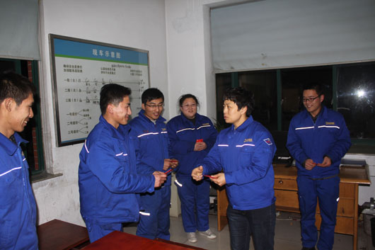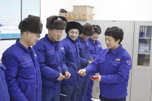 “大家辛苦了,给你们拜年了,祝你们新年快乐”王洪敏先后到了油品处、监控室、保卫科、仓管处等部门,每到一处她都送上了节日的祝福,她说:“我们特殊的工作性质决定了你们不能回家过年,我向你们及你们的家人拜年,公司感谢你们的付出。通过今年的竞岗我们也发现了一些优秀的年轻人,希望你们能利用好公司提供的平台,早日脱颖而出,担当重任,希望大家有什么想法和思路要积极反映,共同把企业运营好。”