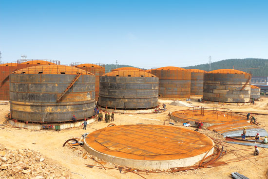 截至6月底,3000立方米原料罐主体完成8个,1000立方米原料罐主体完成4个,2000立方米主体完成4个。四个主控车间已全部完成,月底铝合金门窗等配套完成。人工造地和山体爆破正紧张有序进行,保证月底将办公楼和化验楼基础完成。该项目原料罐是核心,技术人员根据材料和罐体的特殊性,自定焊接工艺进行创新,提高了油罐质量。院墙基础和地面平整工作,正在持续有序进行,整个项目建设有望提前竣工,投入生产。