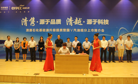 ——清源石化基础油升级提质暨国Ⅴ汽油组分上市推介会成功举办 在这秋高气爽、硕果累累的季节,为见证发展成果,深化共赢合作,集团于2014年8月8日在淄博齐盛国际宾馆成功举办清源石化基础油升级提质暨国Ⅴ汽油组分上市推介会。这是继率先发布国Ⅴ柴油后,清源石化清洁能源二次提质、工艺技术勇于革新的又一力举。 本次发布会盛况空前,嘉宾云集。邀请到山东省石油化学工业协会规划发展部处长李文峰,国内润滑油界资深专家、锦州石化高级工程师、清源石化方宇润滑油公司特聘顾问王玉乾,重质油国家重点实验室博士、中国石油大学著名教授柴永明,淄博市化工行业管理办公室副主任段秀庆等行业领导和专家,中国进出口银行山东省分行经理朱文彬、中国银行淄博分行副行长朱国庆、建设银行淄博分行副行长邵磊、招商银行淄博分行副行长杨卫国、渤海银行淄博分行行长李涛、渣打银行中国公司经理胡然、东亚银行青岛分行经理赵军及工商银行、浦发银行、光大银行、天津银行、中信银行等十几家金融机构嘉宾,以及中油华铁、石大胜华、北方淄特、中海油销售、中石化润滑油、东营至信工贸、万隆润滑油销售等几十家全国范围的大型客户代表和代理商共同出席,见证成绩,分享喜悦。同时集团董事长马之清、正本物流有限公司董事长王洪敏、集团副总经理陈春霞、清源石化总厂厂长曹永刚、集团油品销售公司总经理张红梅、方宇润滑油成品油公司总经理尹振元等公司领导也出席了此次发布会。中国化工报、科技日报、淄博电视台、淄博日报等多家新闻媒体对此次盛会进行了跟踪报道。 8月8日上午9时,伴随着清源集团清源石化主题片的播放,推介会正式开始。通过播放主题片,使到场嘉宾对集团的发展道路、企业文化以及清源石化总厂的情况和发展计划进行了直观深入的了解。主题片播放结束后,会议现场爆发出了热烈的掌声。 本次会议分为两个阶段,第一阶段由集团总经理焦冲主持。会上,集团董事长马之清首先向与会嘉宾致欢迎辞,他首先对到场专家和嘉宾以及支持集团发展的社会各界朋友表示欢迎和感谢,同时对此次清源石化基础油升级提质暨国Ⅴ汽油组分上市发布表示祝贺,他指出:“此次推介会的举行,再次彰显了清源石化生产加工高品质油品的真正能力,证明了清源石化践行环保责任、奉献高清洁油品的信心和决心。”集团董事长马之清对清源石化总厂、油品销售公司、方宇润滑油成品油公司与众多客商朋友的合作寄予厚望,同时也对清源石化、油品销售公司及方宇润滑油成品油公司提出了新的历史要求,希望各公司能够不辱使命、不负众望,以不骄不躁之心态,昂扬奋进之精神,服务至上之理念与广大朋友在更广阔领域开展全方位合作,共绘共赢、美好的未来蓝图。 随后,清源石化总厂厂长曹永刚向到场嘉宾介绍了清源石化总厂情况。曹总在会上提到,清源石化是清源集团旗下的支柱产业之一。公司以生产国IV、国V汽油组分、柴油和符合API标准的II、III、IV类润滑油基础油及成品油为主,石油加工能力达350万吨/年,预计2015年将达到700万吨/年。近年来,清源石化顺应国家油品升级换代的发展要求,不断优化装置结构,改良生产工艺,加快科技创新注入,提升产品综合品质,相继打造出了航空煤油、国Ⅴ柴油、高清洁民用天然气。此次通过装置升级和技术创新,在原有全流程加氢技术基础上,清源石化自行研制生产装置,改良生产工艺,实现了润滑油基础油品质的大幅提升,同时也成功副产出高辛烷值、低硫含量的国Ⅴ汽油组分,以奉献清洁能源这一独特方式,助推国家油品升级和可持续发展。通过曹总的介绍,各位嘉宾朋友对清源石化总厂的产业定位有所了解,生产规模、装置情况、技术工艺及产品等特色鲜明的特点都给与会嘉宾留下了深刻印象。 上午十时,进入意向客户签约仪式。在本次大会中,多方来宾本着互惠共赢的美好愿望,与清源石化达成了众多领域合作意向,签署了战略合作框架协议。中海油销售天津有限公司副总经理王华与集团油品销售公司总经理张红梅现场签署了战略合作框架协议;中石化润滑油郑州分公司副总经理王晓光与集团油品销售公司总经理张红梅签署了销售年协议;吉林四平市万隆润滑油销售有限公司总经理段文明与方宇润滑油成品油分公司总经理尹振元签署了成品油长期订货协议,总签约额达1.92亿元。签约商家纷纷表示,之所以达成此次与清源集团的合作,不仅仅是看中了升级提质油品的环保品质和未来的市场前景,更重要的是从根本上认同清源集团“品行天下”的企业理念和强劲迅猛的发展势头,他们都对未来的合作双赢充满了信心。 随着签约仪式告一段落,本次推介会第一阶段逐渐接近尾声,山东省石油化学工业协会规划发展部处长李文峰作了总结讲话。李文峰处长对清源石化此次基础油升级提质暨国Ⅴ汽油组分的上市发布表示热烈祝贺,同时对清源石化顺应国家油品升级换代的发展要求,不断优化装置结构,改良生产工艺,加快科技创新投入,提升产品的综合素质,始终坚持践行环保责任,奉献高清洁能源的发展理念给予了肯定和认可。 本次发布会不仅是一次合作的大会,还是一场分享知识、交流学习的盛宴。发布会第二阶段是专家主题论坛,邀请到重质油国家重点实验室博士、中国