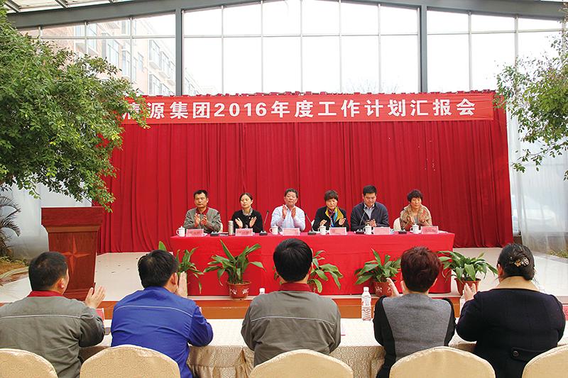 2016年2月12日,恰逢正月初五新春佳节,清源集团经理办公会成员欢聚一堂,在天堂寨隆重举行2016年工作计划汇报会,总结部署2016年的工作,这次大会对于做好2016年的各项工作有着积极促进的作用。集团董事局成员、各子公司管理团队成员、集团各部门负责人等近两百人参加了此次会议。会议由集团总经理焦冲同志主持。
