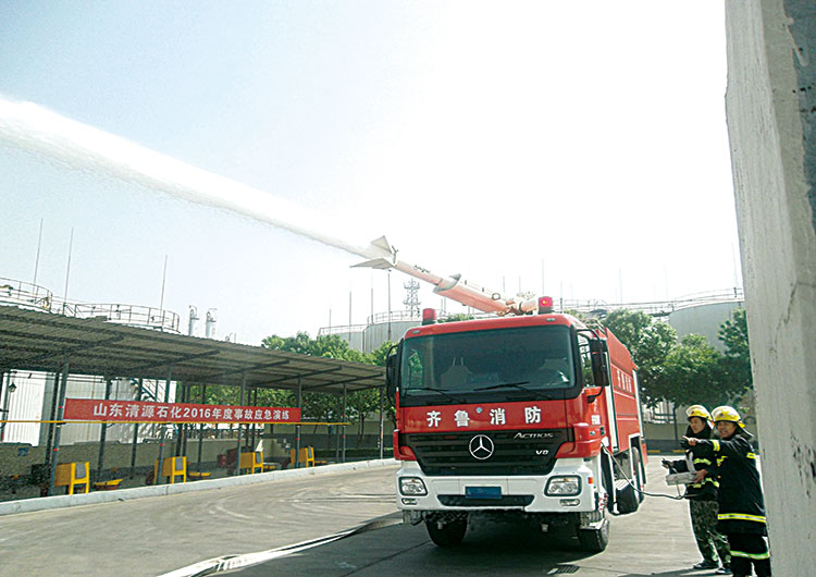 为了进一步强化企业员工消防安全教育,提高抗击突发事件的应变能力,能够迅速有组织的安全疏散,掌握正确使用消防器材和逃生的方法。在公司领导的关心和支持下,按照“清源石化二季度事故应急预案”的相关要求,由公司副总经理李辉担任消防演习的总指挥,特邀齐鲁石化五中队参演,储运车间主任吴振强担任现场指挥,刘传文、单保滨、李云峰以及各车间安全员担任演习评价人员,吴海平担任现场讲解人员,各车间当班职工、后勤部门担任现场的各项工作,集团综管处进行摄像,并且石化二分厂、正本物流以及周围公司、雪宫街道办人员进行了观摩。