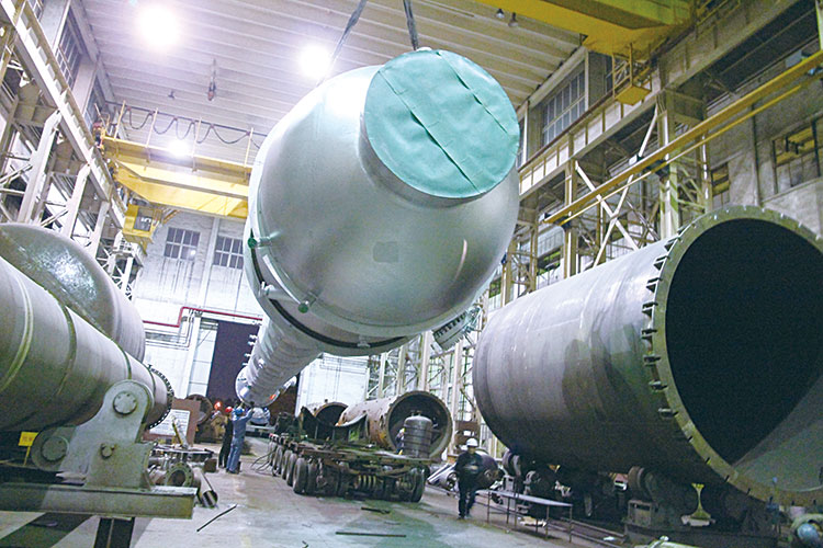 新出厂的这台反应器是中石化荆门分公司汽油升级脱硫装置的核心设备,总重达181吨,设备总长45米、最大直径4.0米。该反应器材质特殊,焊接难度大、技术要求特别高,生产过程中检测项目多,结构复杂,组对、吊装难度大,机械公司为此专门成立了质量、技术、生产攻关施工组。从开始施工制造,精心组织安排,严格按工艺技术要求施工,采取分段施工、最后组对办法,苦干了3个多月,克服重重困难,提前圆满完成了任务,经检测各项技术指标均达到要求。