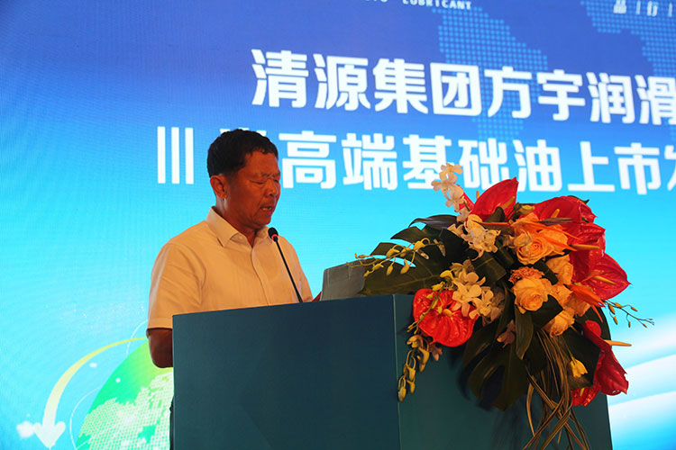 接下来,清源集团董事局主席马之清作了热情洋溢的致辞。马主席在致辞中充分肯定了方宇取得的显著成果,他指出,Ⅲ类高端基础油是清源集团石化板块润滑油型炼厂——山东方宇润滑油有限公司五年积淀、创新、升级的质变成果。它真正填补了我国国际顶尖润滑油基础油大规模生产、使用的空白,为我国民族润滑油品牌提质升级提供了强大助力。它将对民营润滑油企业研发具备国际竞争力产品和我国润滑油强国建设具有重大意义。
