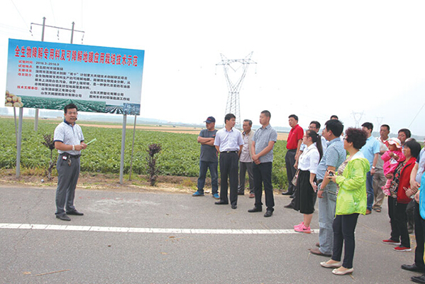 总经理刘志锋就实验基地规模、作物品种、项目进展等向与会领导做了全面介绍。副总经理尹君华引导现场人员就每块实验田实验降解地膜和植物生长效果做了重点讲解。