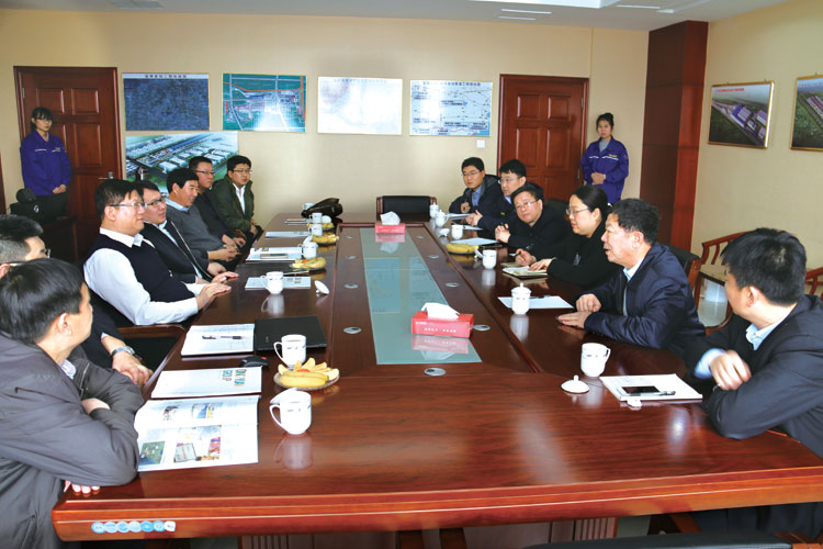 在六楼会议室,马董事长向客人表示欢迎并介绍了清源集团特别是特种油项目的发展情况。