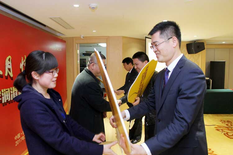 为了感恩答谢客户的大力支持,清源石化•方宇润滑油为2016年产品销量前三甲的淄博一谦经贸有限公司、福建漳州正达润滑油公司、德州新新润滑油供应站准备了一份特殊的礼物,一辆办好所有手续的货运车。焦冲先生、张同飞先生、方宇润滑油董事长尹振元先生为三个公司代表郑重颁发“金钥匙”。这代表的不仅是方宇润滑油对他们过去几年与方宇的合作成果的肯定,还表达了方宇致力于与经销商朋友们至诚至信、合作共赢、稳步发展的真诚愿望,这也正体现了清源集团“品行天下、正本清源”的企业理念。颁奖仪式之后主持人邀请福建漳州正达润滑油公司总经理林国华先生发表获奖感言,他用朴实的话语表达了对方宇润滑油的信任与肯定,并表示未来将与方宇润滑油相扶相携、不离不弃。真诚的话语感动了全场。