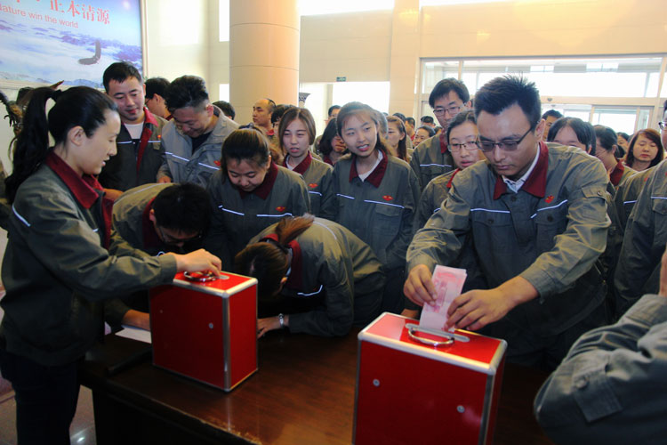 5月15日清早时,清源集团商务中心一楼大厅内,大家怀着对重病同事的关爱自觉列队,你20元、我50元,纷纷献上自己的一份爱心。这是为机械公司铆焊二车间患白血病员工邵新涛爱心捐款的一个镜头。