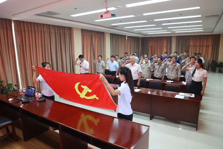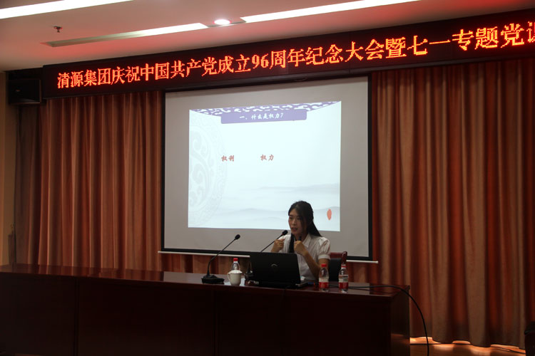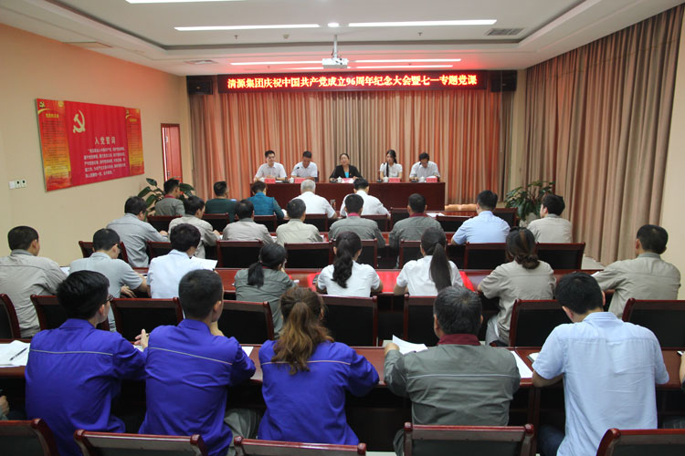 | 6月30日上午,在中国共产党96周岁生日前夕,清源集团隆重举行“庆祝中国共产党成立96周年纪念大会暨七一专题党课”主题活动。临淄区政府副区长李玲,临淄区区委党校中级讲师王兵,金岭镇政协委员、联络室主任于飞,金岭回族镇党委委员、人武部部长、安监站站长孙延涛同志应邀出席了本次主题活动。清源集团党总支书记、清源集团总经理焦冲及5个支部书记、党员共40余人参加了本次活动。 活动第一阶段由金岭镇政协委员、联络室主任于飞主持。临淄区政府副区长李玲同志为党员们上了一堂精彩、详实、深刻的党课。李玲同志在党课中指出,要切实开展“两学一做”系列活动,认真学习党章党规及系列讲话,树立“党员意识、规矩意识、组织意识”三种意识,加强自身约束,加强思想政治建设,争做民营企业的合格党员。李区长在讲话中还对临淄区发展规划进行了详细阐述,并以清源集团30多年的发展为例,要求企业内部党员要学习集团文化与精神。她说:“清源集团从起步到出发,从转型升级到再出发,特别是经历了担保链风险后,咬定青山不放松,历经坎坷,百折不挠,迎来发展的新篇章,这一切的取得都离不开党员干部的模范带头作用。” 第二阶段活动由清源集团党总支书记、总经理焦冲同志主持。全体党员首先观看纪录片《焦裕禄生命的最后53天》,了解了人民的好书记——焦裕禄同志在最后53天中虽经历疼痛,但仍心系兰考、心系人民的情怀,通过此片,教育广大党员干部要积极调整自己,保持廉洁奉公的道德情操,始终把党和人民的利益放到第一位,做思想道德建设的楷模,心中始终装着一杆焦裕禄式的秤。随后,金岭回族镇党委委员、人武部长、安监站站长孙延涛同志为大家进行党性教育,孙延涛同志在会上呼吁全体党员要紧密团结在以习近平同志为核心的党中央周围,始终坚持党的领导,加强党的建设,以身边的“黄金榜样”为引领,充分发挥基层党组织的战斗堡垒作用和广大党员的先锋模范作用,加速提质增效和转型升级,为“建设百年清源”而努力奋斗,以沉甸甸的金色发展成果向党献礼。接着,区委党校王兵老师为全体党员作了《加强权力制约和监督,净化党内政治生态》的主题报告,王兵老师引经据典,并贯穿着古今中外的鲜活案例,从多个角度阐述了权力制约与监督之间的多层关系,也对党内的权力监督提出了几点要求,为企业的党员素质建设指明了方向。 最后在清源集团党总支书记、清源集团总经理焦冲的带领下,全体党员面向党旗,庄严地重温入党誓词。“我宣誓,我志愿加入中国共产党,拥护党的纲领······”一声声坚定而又高亢的宣誓声升起,与鲜红的党旗相互辉映。 经过本次党课的洗礼,集团党总支全体党员再次磨砺初心、坚定信念,继续发扬红色“战斗堡垒”作用、先锋模范作用,调动全体员工的积极性和创造力,共同推动集团特种油生产基地项目建成及“三个五百”目标的早日实现。