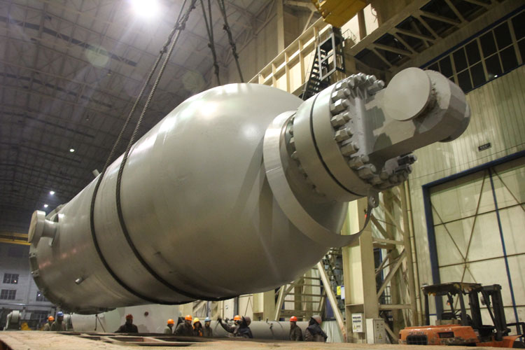 2017年正式进入产品制造阶段,公司为此专门成立了质量、技术、生产攻关施工组,由车间组装八班班长石军和车间首席焊接技师韩相国带领班组成员开始施工制造。施工前由研发小组成员对所有参与制造人员详细进行技术交底,确保施工人员完全掌握施工技术,施工过程中精心组织安排,严格按工艺技术要求施工,历时近一年,克服各种困难,圆满完成了任务,经检测各项技术指标均达到标准及技术文件的要求,顺利完成了我公司首台加钒钢反应器的制造。