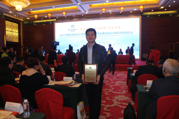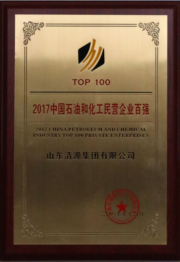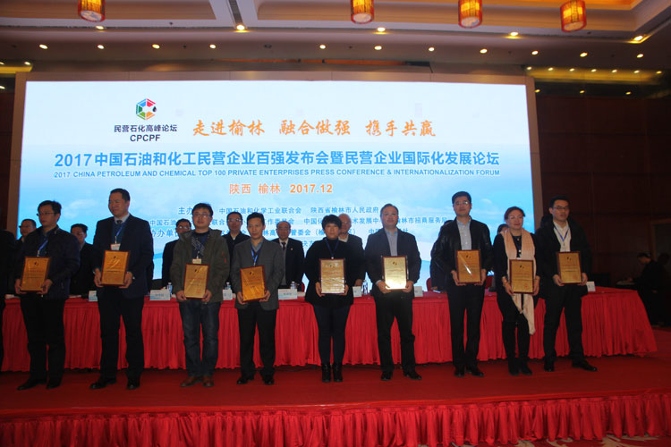 2017年12月9日,中国石油和化工民营企业百强发布会暨民营企业国际化发展论坛在丝路骆城、能源新都陕西榆林隆重召开。山东清源集团有限公司位列中国石油和化工民营企业第19位,集团董事局董事、总经理焦冲代表集团上台领取百强证书。