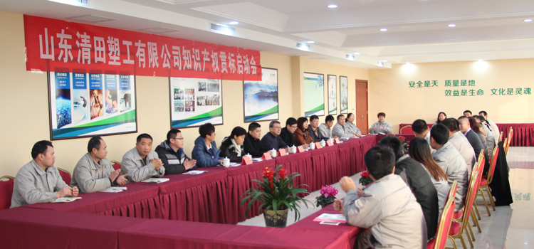 1月19日,知识产权管理规范贯标启动会在清田塑工召开。淄博市知识产权局局长胡庆乙,临淄区科技局副局长孙贤才,临淄区区知识产权局局长杨美红,副局长朱爱玲,山东发思特知识产权信息服务有限公司总经理耿霞,清田塑工有限公司董事长马强及集团技术中心相关人员出席本次贯标启动会。