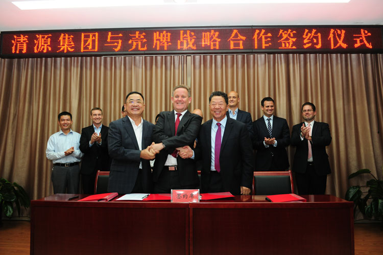 2018年9月19日,清源集团与壳牌在清源商务中心签署战略合作协议。壳牌全球原油贸易总裁马克•夸特梅因,荷兰银行、澳大利亚联邦银行、荷兰安智银行、荷兰合作银行、西太平洋银行五家外资银行代表,临淄区委常委、副区长刘在东,临淄区政协副主席、财政局局长王守国,九合金控董事长兼总经理徐玉岗,清源集团董事长马之清,清源集团常务副董事长陈春霞,清源集团总经理焦冲等出席签约仪式,金岭回族镇党委书记崔国华主持了签约仪式。