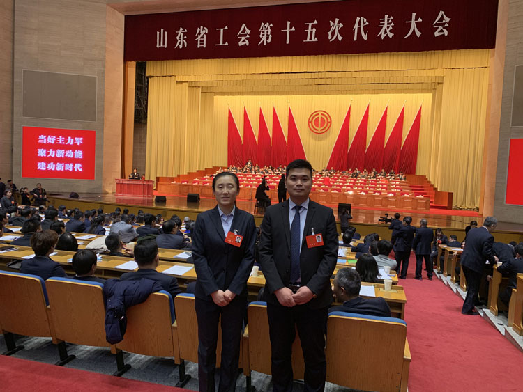 | 山东省工会第十五次代表大会隆重开幕集团工会主席管新艳、清沂山石化工会主席赵云强代表参会 |
